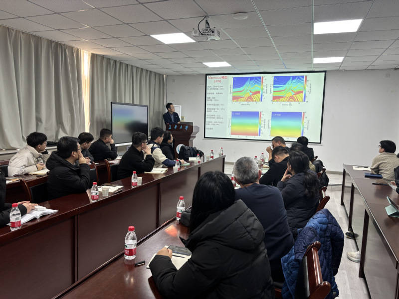 Associate Professor Yang Jizhong started from the challenges faced in the full-waveform inversion of earthquakes, analyzed the problems of period jumps, multi-parameter crosstalk, wave-mode coupling and initial model dependence in the full-waveform inversion of elastic waves, and introduced the multi-parameter full-waveform inversion method of elastic waves based on the extended model search space with stochastic gradient sampling The superiority of the stochastic gradient sampling inversion method in the high-precision modeling of longitudinal and transverse wave velocities was verified through multiple numerical examples. Finally, the practical application potential of the relevant methods and the key problems that need to be solved urgently were summarized.